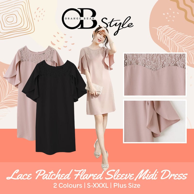LACE PATCHED FLARED SLEEVE MIDI DRESS