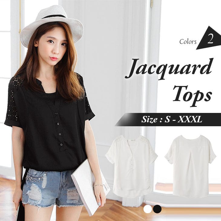 JACQUARD HOLLOW V-NECK FAKE TWO-PIECE TOPS