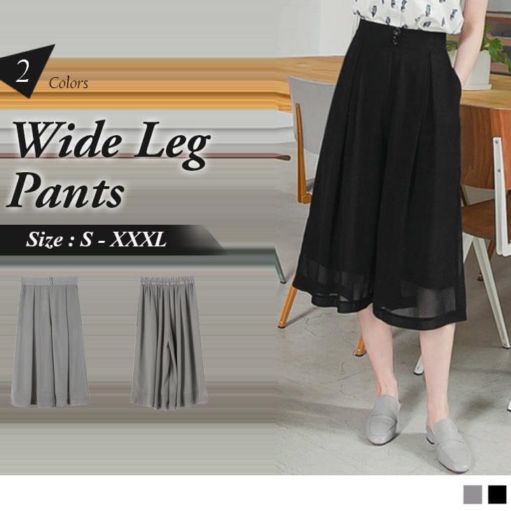 HIGH ELASTIC WAIST WIDE LEG CHIFFON PANTS