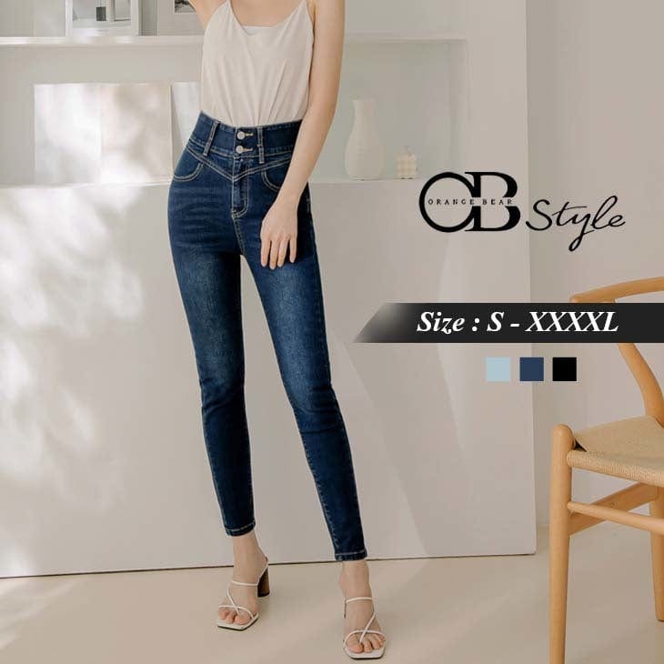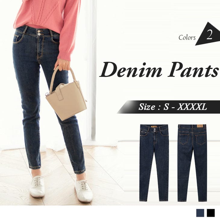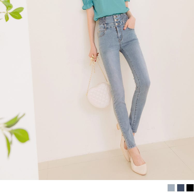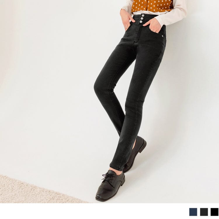 HIGH WAIST BUTTONS SLIM DENIM LONG PANTS