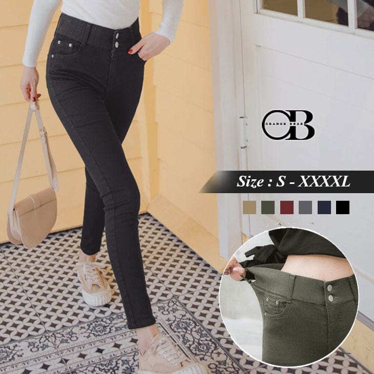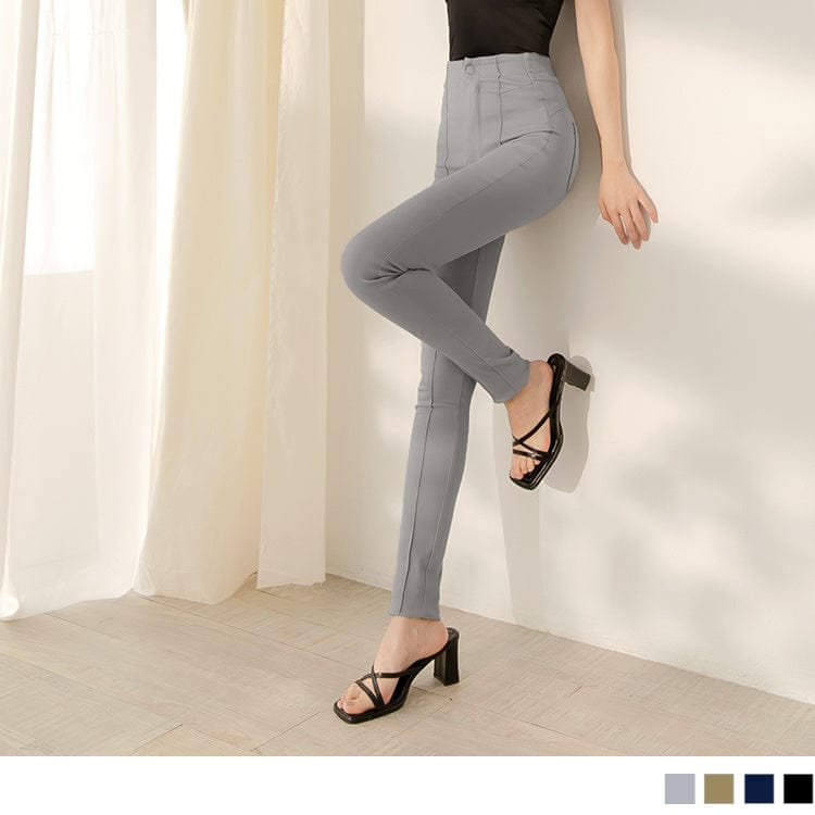 HIGH WAIST ELASTIC BUTTONS SKINNY LONG PANTS