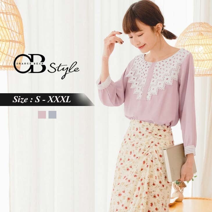 GEOMETRY HOLLOW OUT LACE PATCHED LONG SLEEVE TOPS