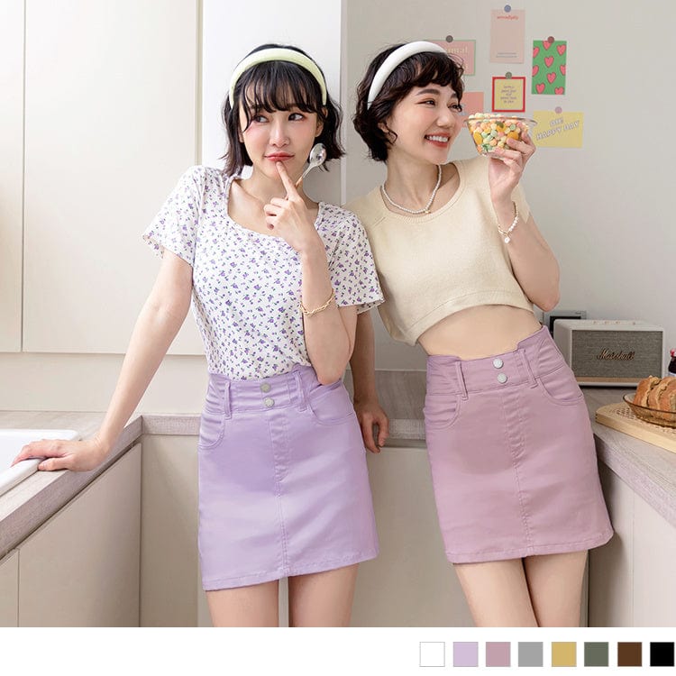 HIGH WAIST BUTTON POCKET MINI SKIRTS