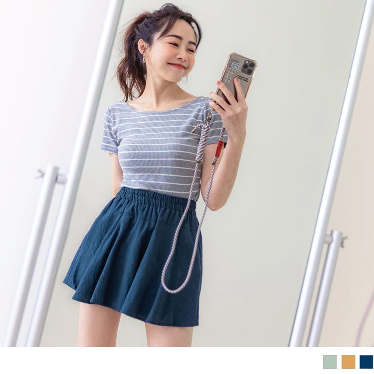 HIGH WAIST ELASTIC WAIST TUNIC A-LINE SHORTS