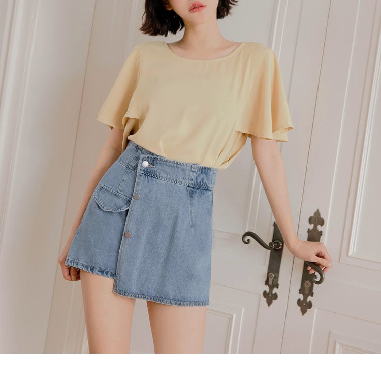 HIGH WAIST ASYMMETRICAL BUTTONS MINI DENIM SKIRTS