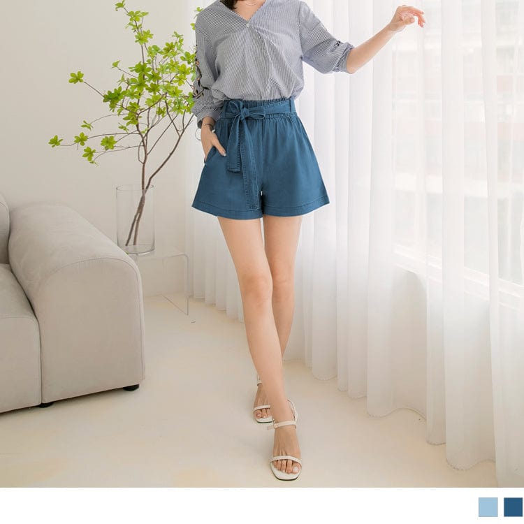 HIGH WAIST BOWKNOT WAIST WIDE LEG DENIM SHORTS