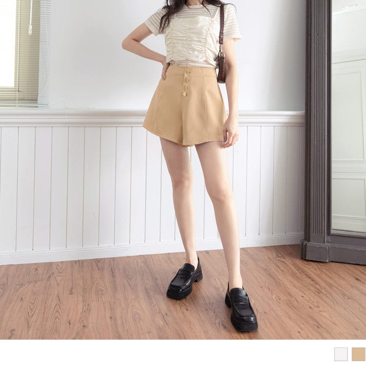 HIGH WAIST BUTTONS A-LINE SLIM SHORTS