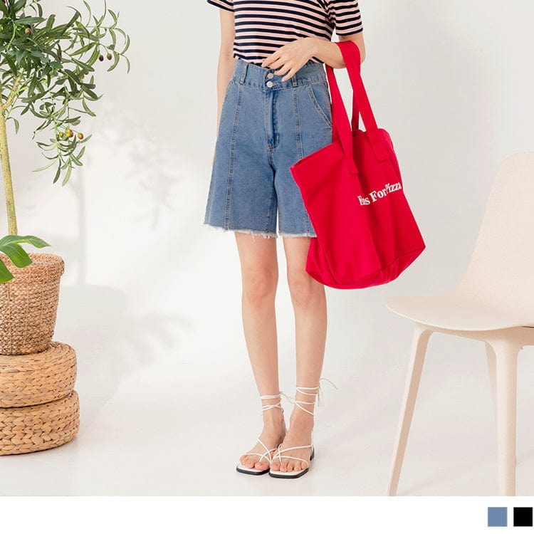 HIGH WAIST COTTON FRAYED HEM DENIM A-LINE SHORTS