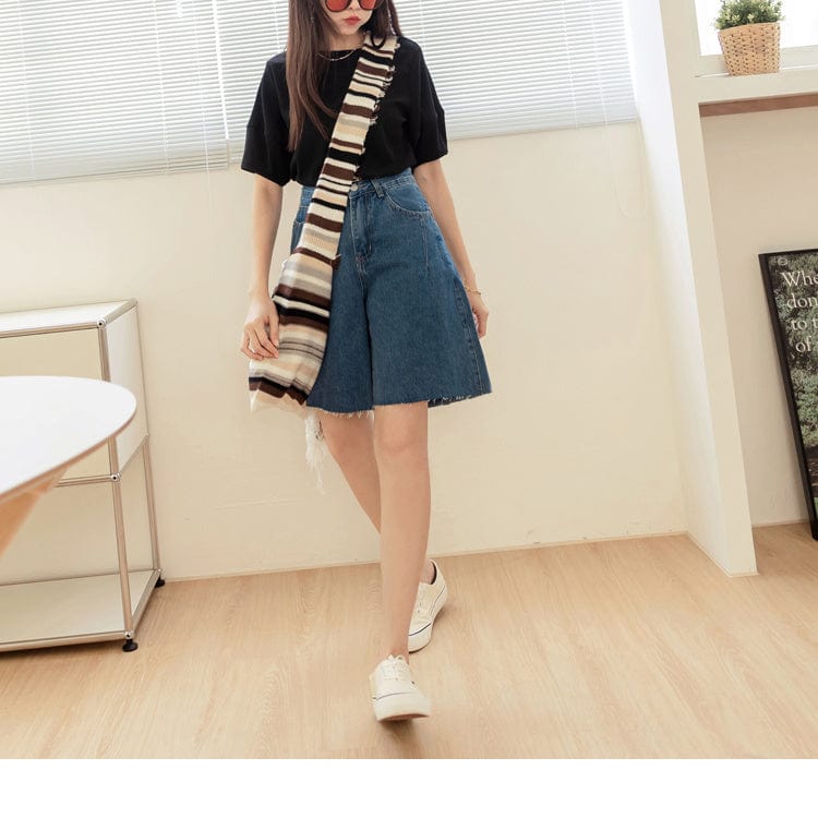 HIGH WAIST A-LINE RIPPED DENIM SHORTS PANTS