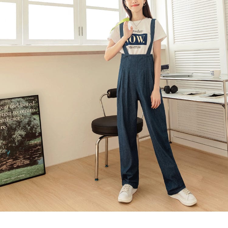 HIGH WAIST COTTON PLEAT DENIM JUMPSUITS