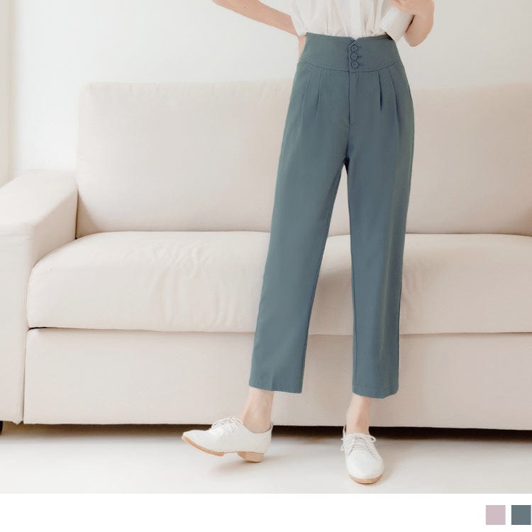 HIGH WAIST BUTTONS POCKETS STRAIGHT PANTS