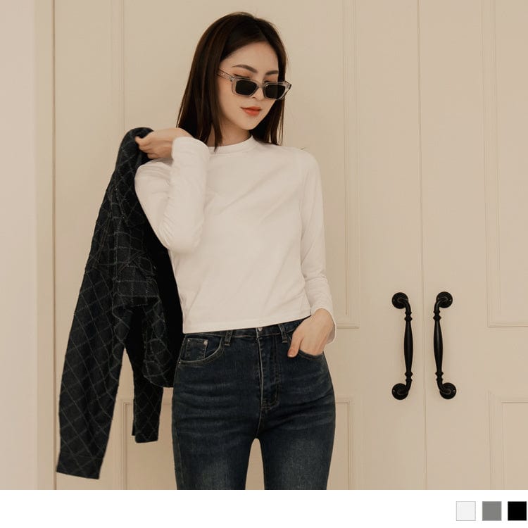 HIGH NECK LONG SLEEVE COTTON CROP TOPS