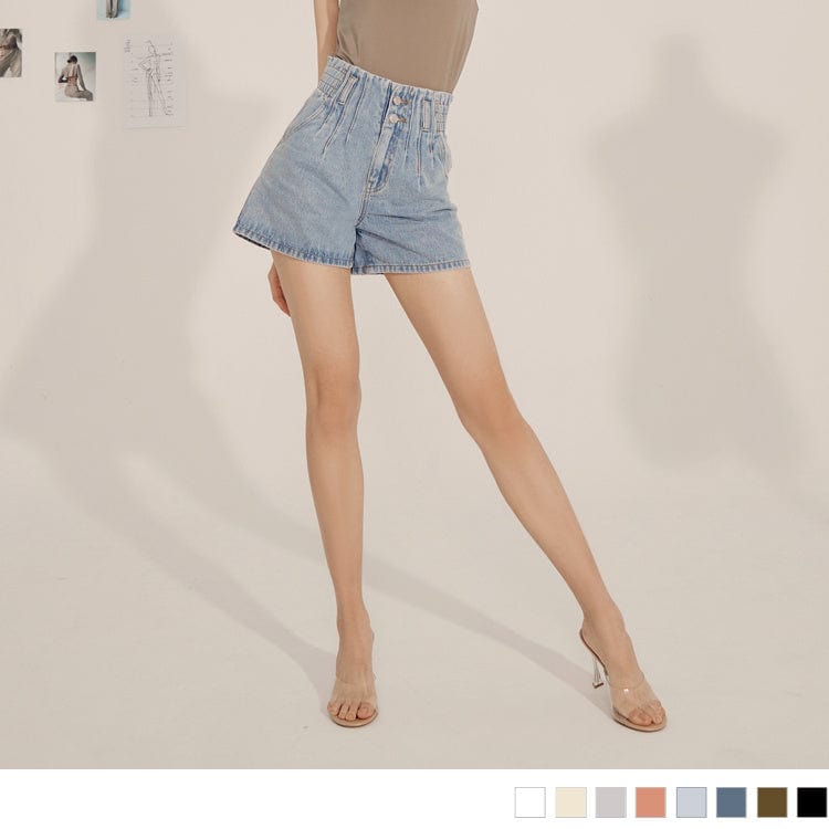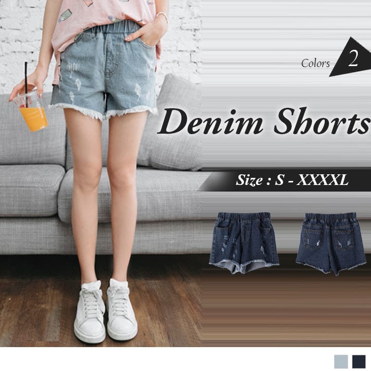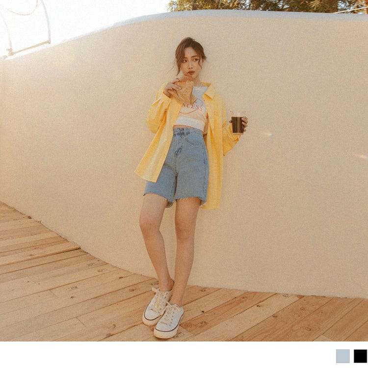 FASHION COTTON DENIM TUNIC FRAYED HEM SHORTS