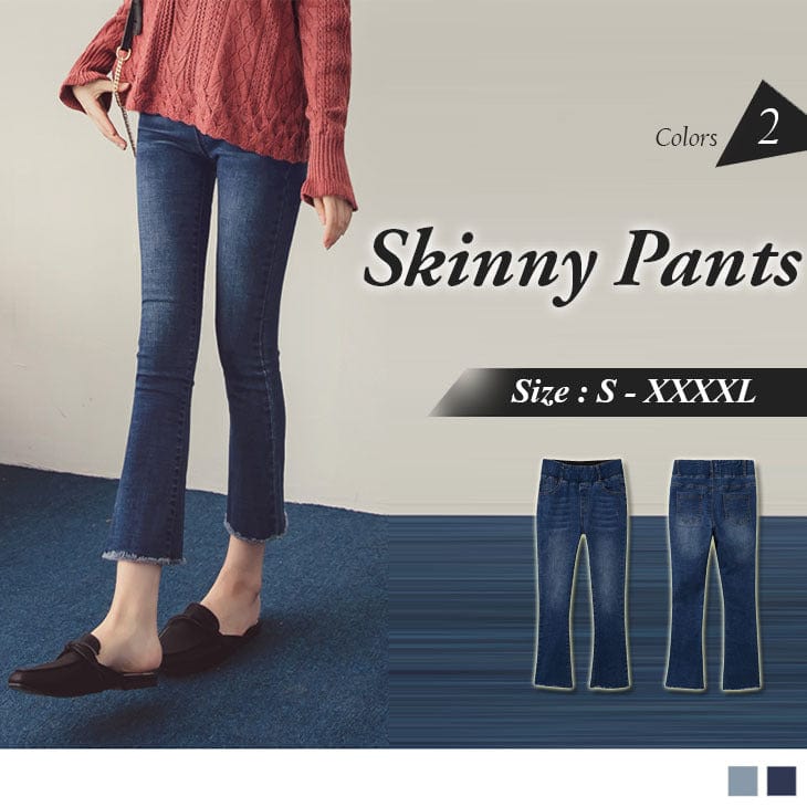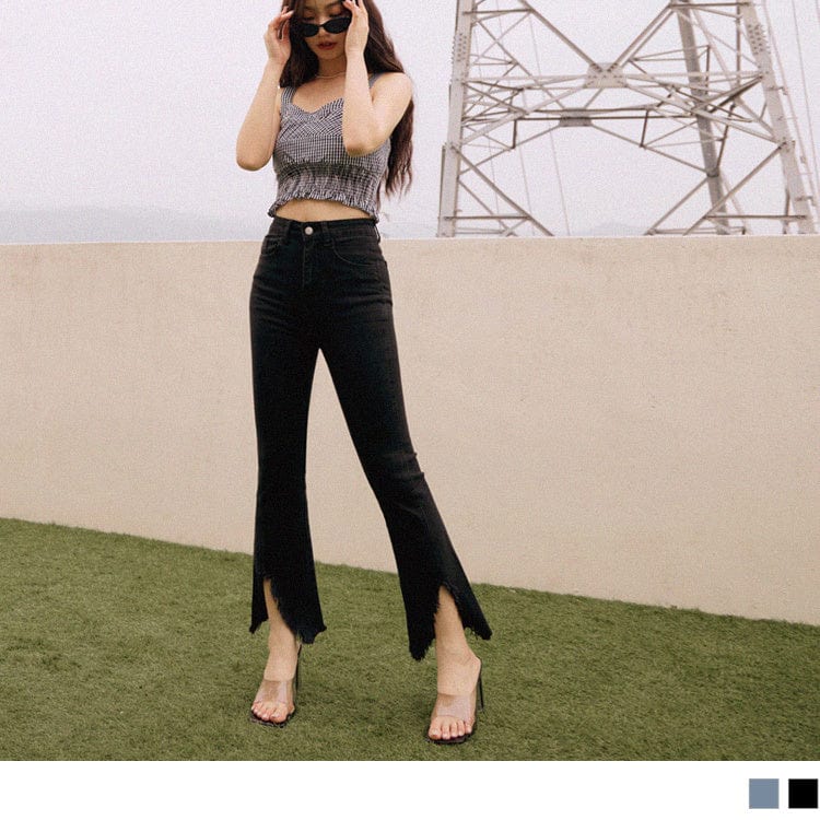 HIGH WAIST FRAYED HEM FLARE SKINNY PANTS