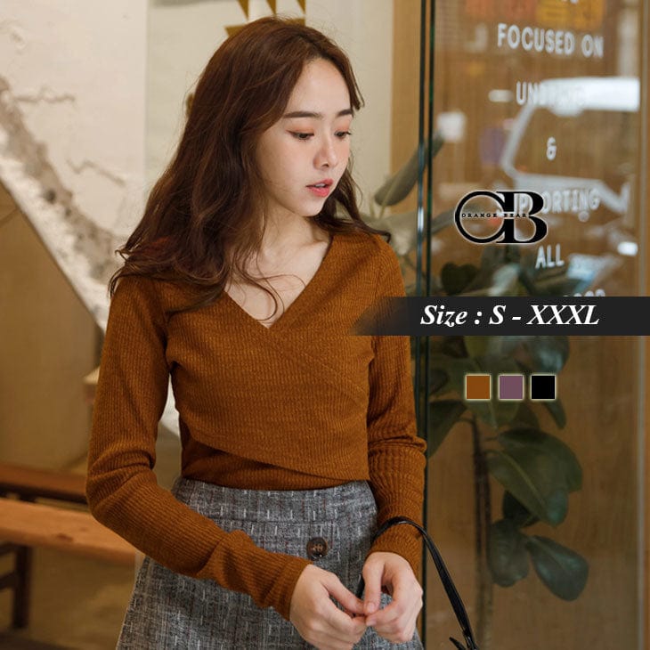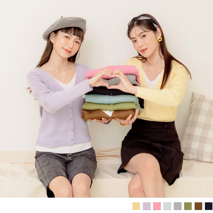FAKE TWO PIECE V-NECK BUTTONS KNIT LONG SLEEVE TOPS