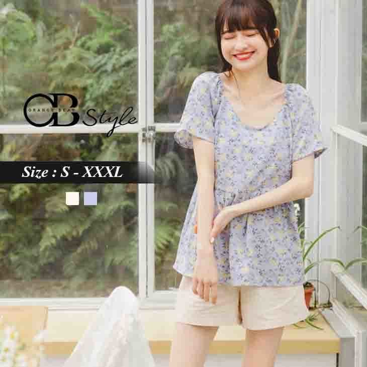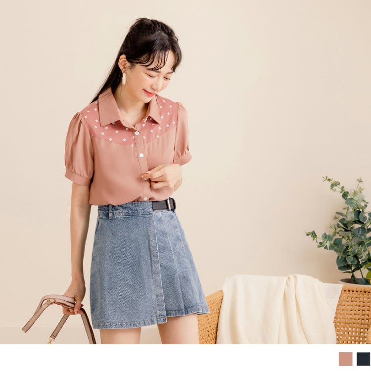 FAKE TWO PIECE PUFF SLEEVE CHIFFON TOPS