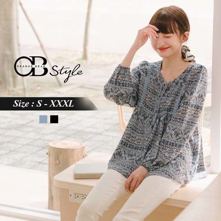FLORAL PRINTED LACE A-LINE LONG SLEEVE TOPS