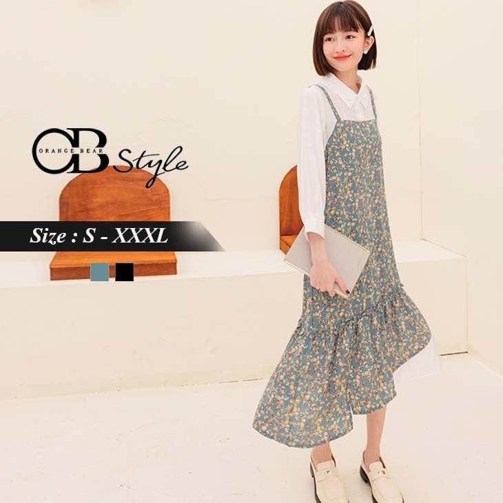 FAKE TWO PIECE FLORAL PRINTED SHIRTS COLLAR DRESS