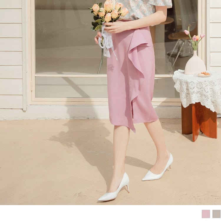 HIGH WAIST CHIFFON RUFFLES MIDI TUNIC SKIRTS