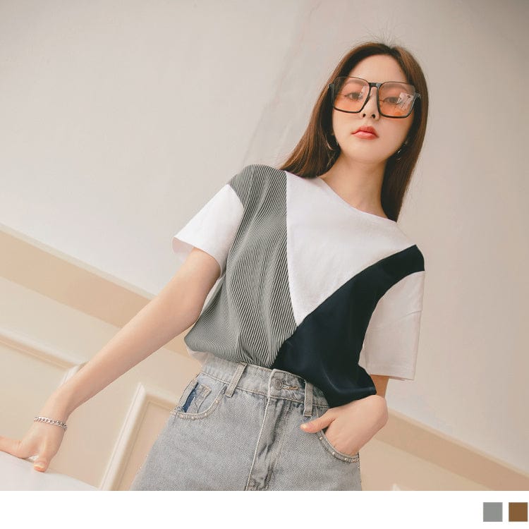 FAKE TWO PIECE PATCHED SHORT SLEEVE TOPS