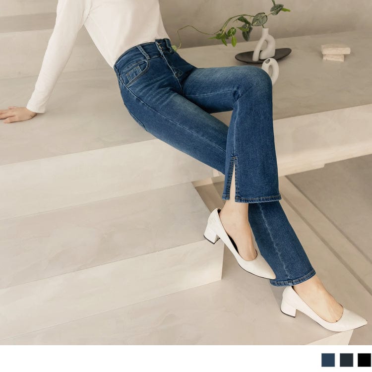 HIGH ELASTIC TUNIC STRAIGHT DENIM LONG PANTS