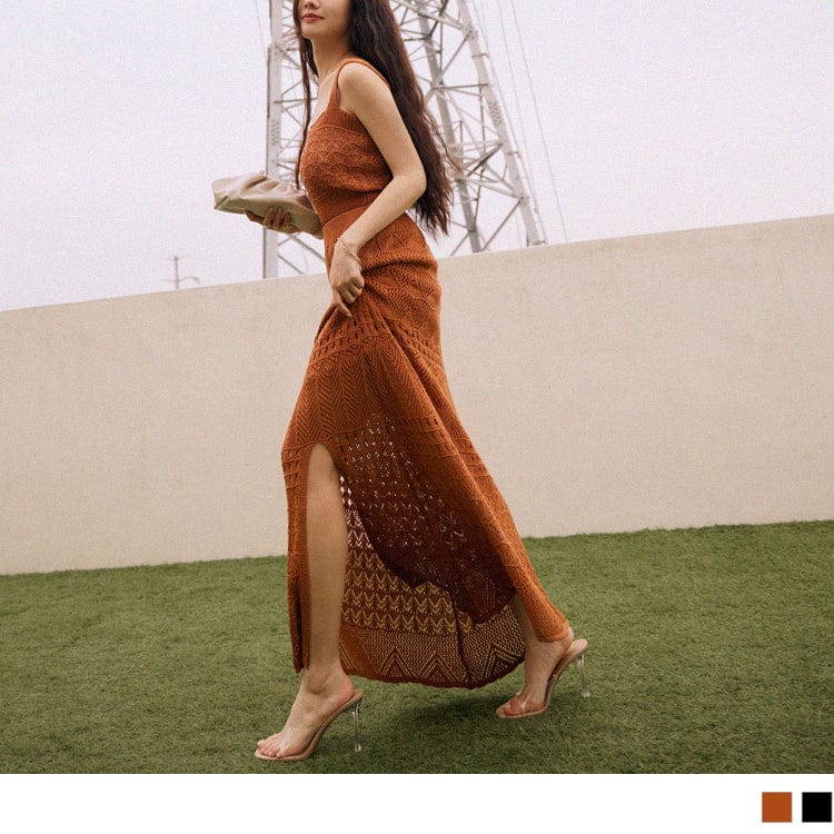 FASHION ELASTIC WAIST HOLLOW OUT TUNIC MAXI SKIRTS