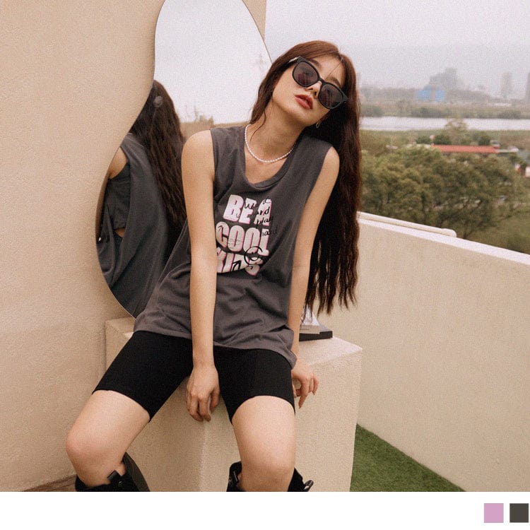 FAKE TWO PIECE SLEEVELESS ROUND NECK COTTON TOPS