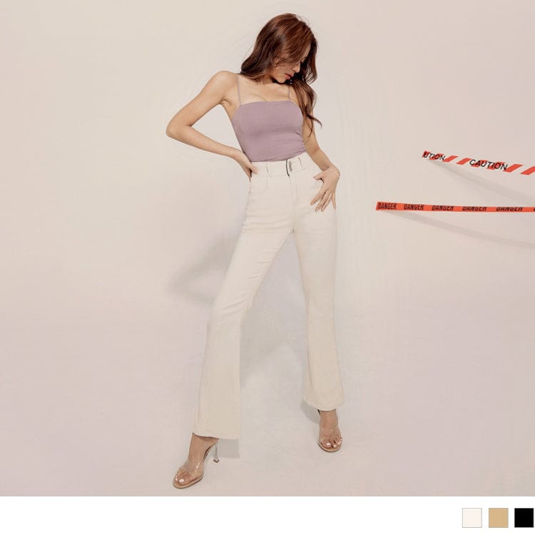 HIGH WAIST COTTON SLIM FLARED LONG PANTS