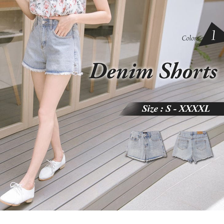 FRAYED HEM WASH DENIM SHORTS