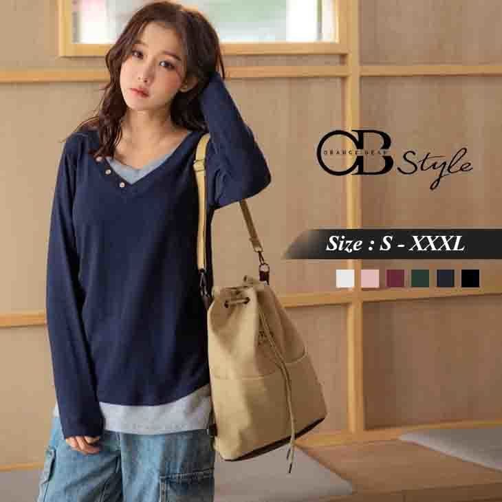 FAKE TWO PIECE COTTON LONG SLEEVE SHIRTS/TOPS