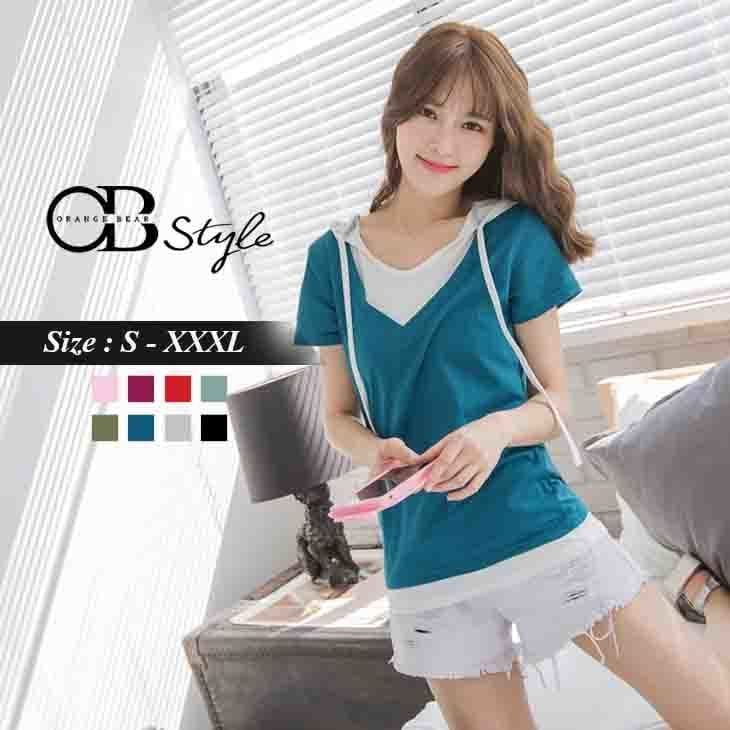 FAKE TWO PIECE SHORT SLEEVE HOODED