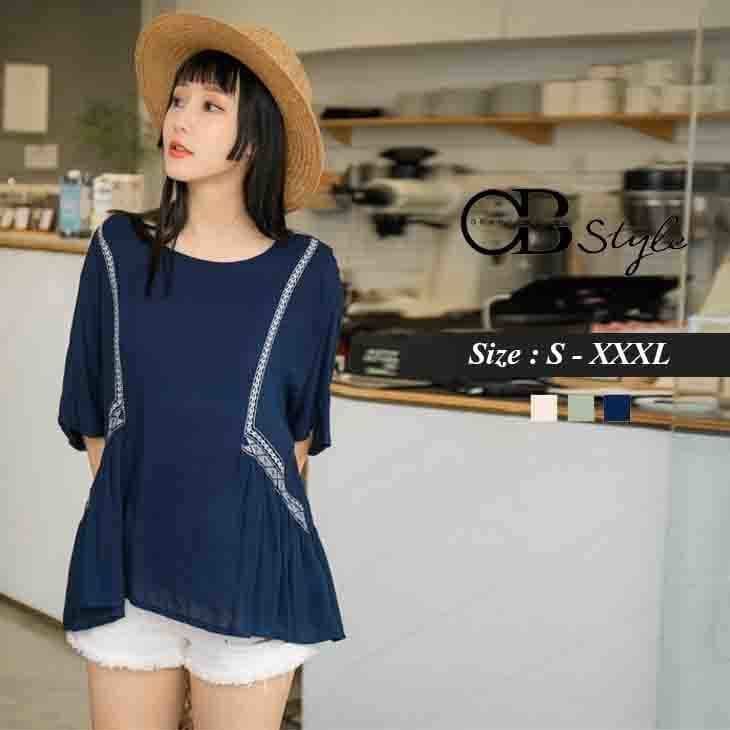 EMBROIDERED ROUND NECK TOPS