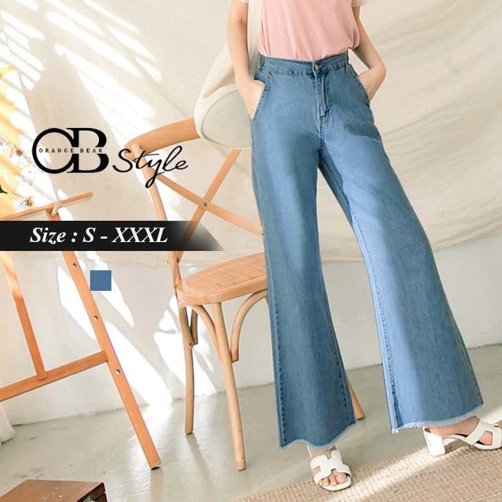 FRAYED HEM DENIM FLARED PANTS