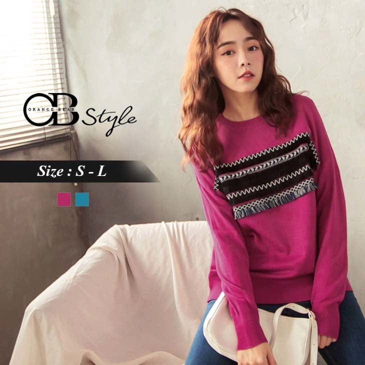 EMBROIDERED TOTEM TASSEL LONG SLEEVE KNIT FUR TOPS