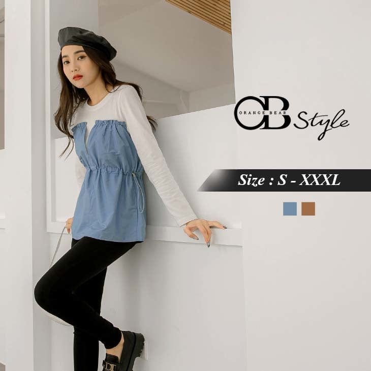 FAKE TWO PIECE ELASTIC WAIST LONG SLEEVE TOPS