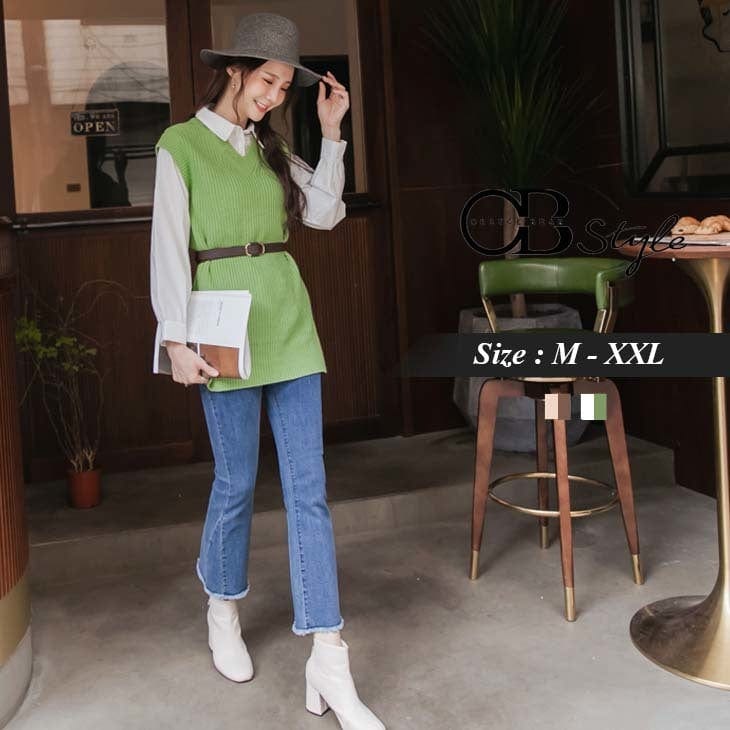 FAKE TWO PIECE V NECK WOOLEN TOP