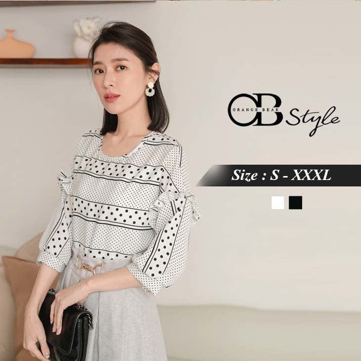 ELEGANT POLKA DOTS CHIFFON LONG SLEEVE TOPS