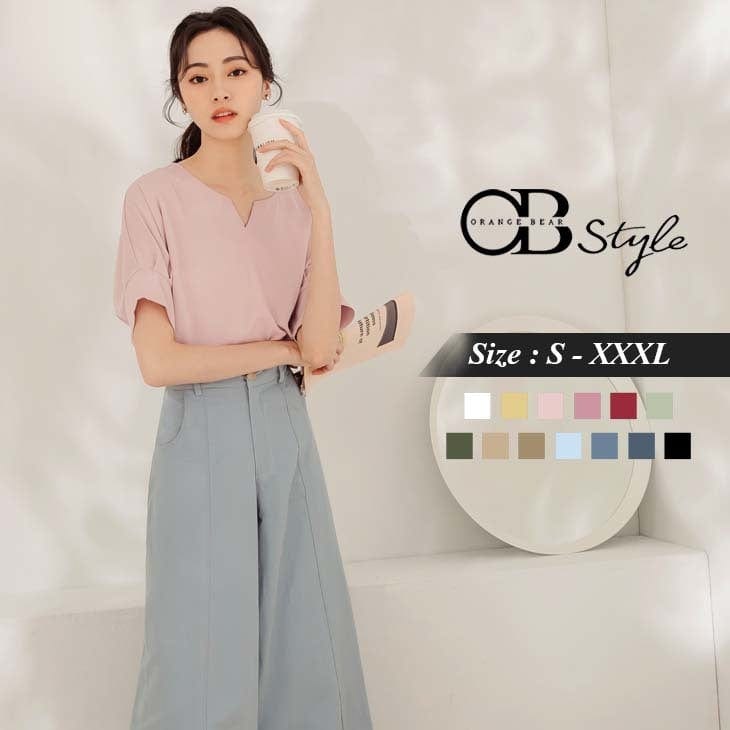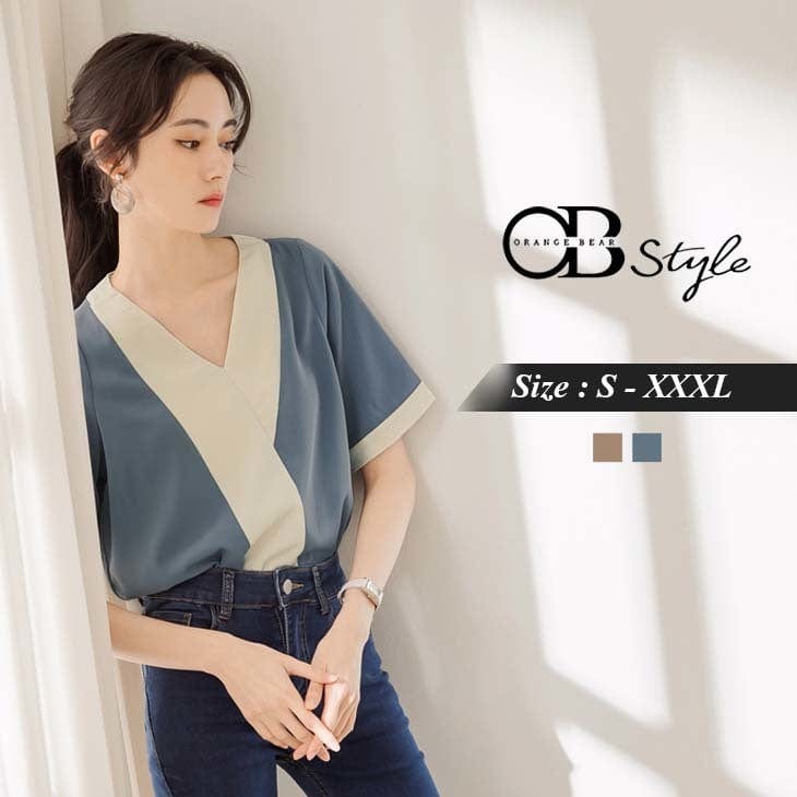ELEGANT CONTRAST COLOR V-NECK SHORT SLEEVE TOPS