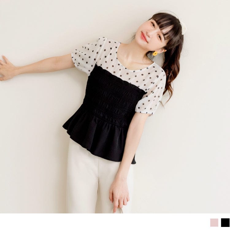 FAKE TWO PIECE TRANSPARENT POLKA DOTS A-LINE TOPS