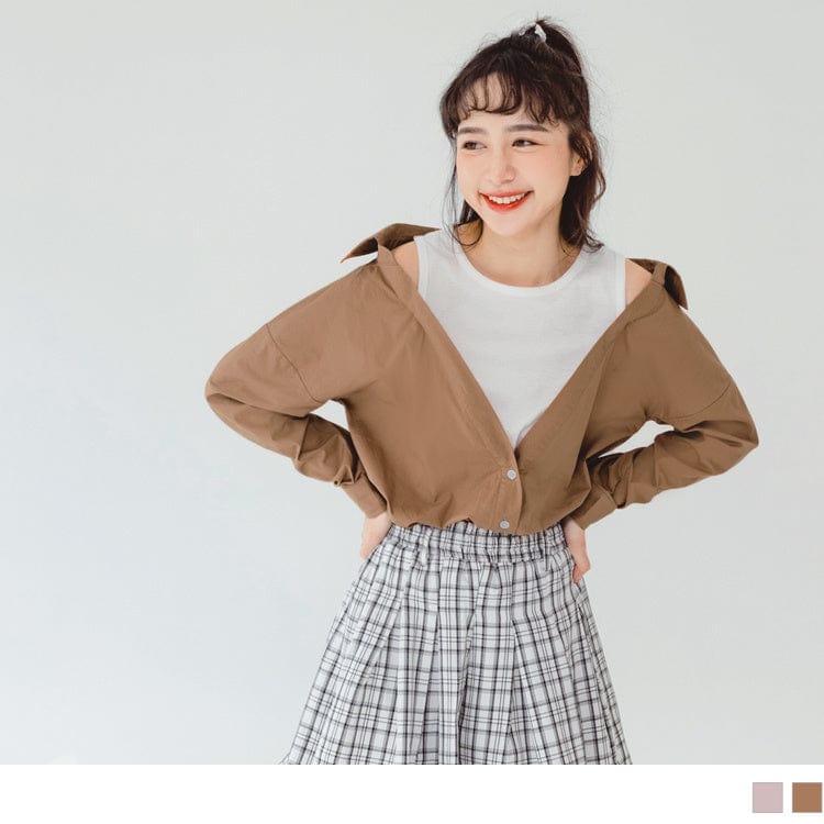 FAKE TWO PIECE LONGLINE SHIRT TOP