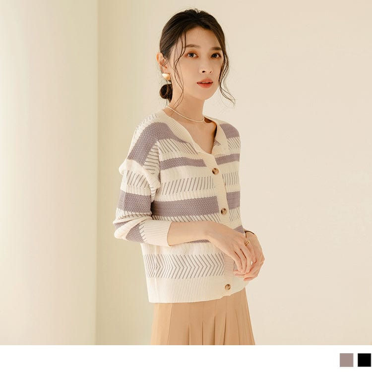 ELEGANT CONTRAST COLOR STRIPED BUTTONS KNIT JACKETS