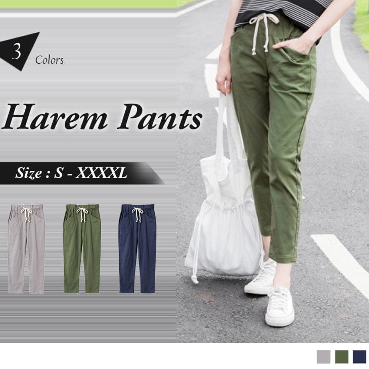 DRAWSTRING WAIST CASUAL HAREM PANTS