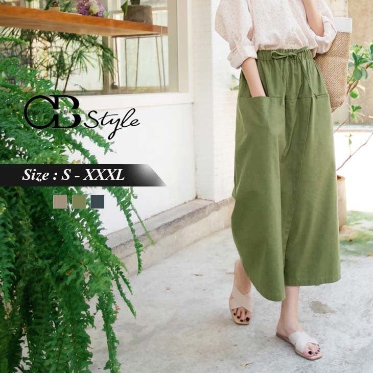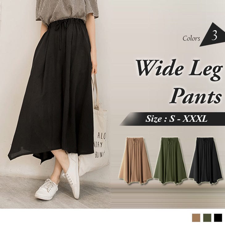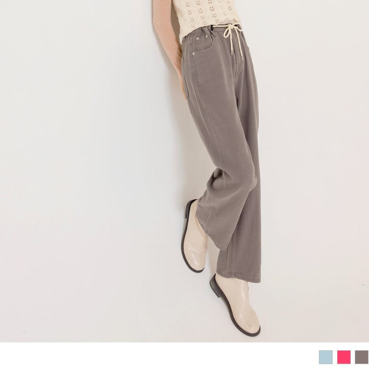 DRAWSTRING WAIST COTTON DENIM WIDE LEG PANTS?? 3 COLOR
