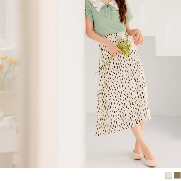 ELASTIC WAIST A-LINE PRINTED MAXI SKIRTS