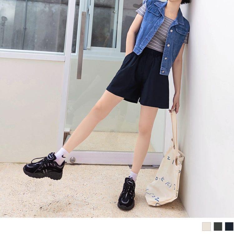 ELASTIC WAIST A-LINE SHORTS PANTS