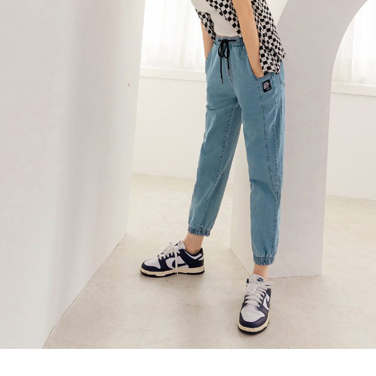 ELASTIC WAIST BRUSHED DENIM HAREM PANTS