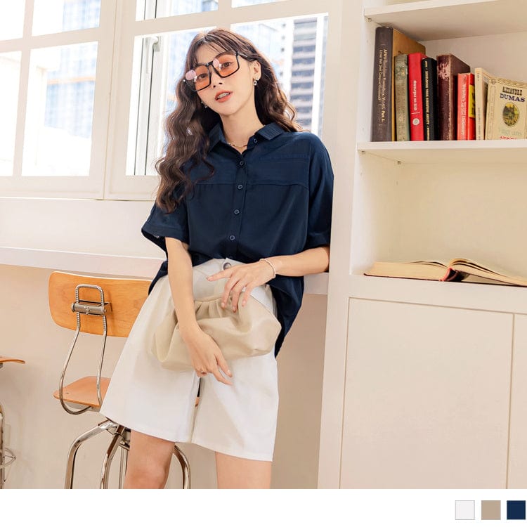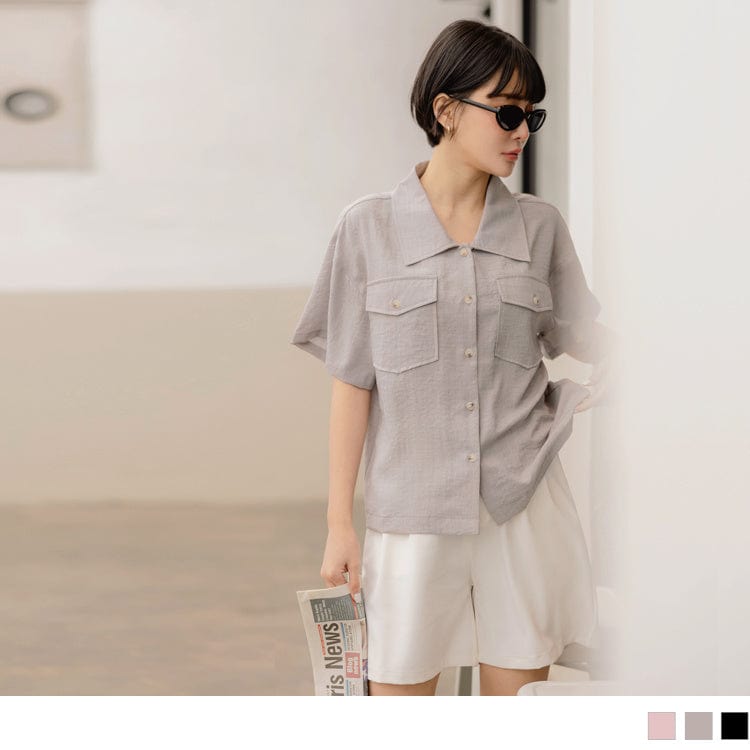 DROP SHOULDER DOUBLE POCKETS SHORT SLEEVE SHIRTS?? 3 COLOR