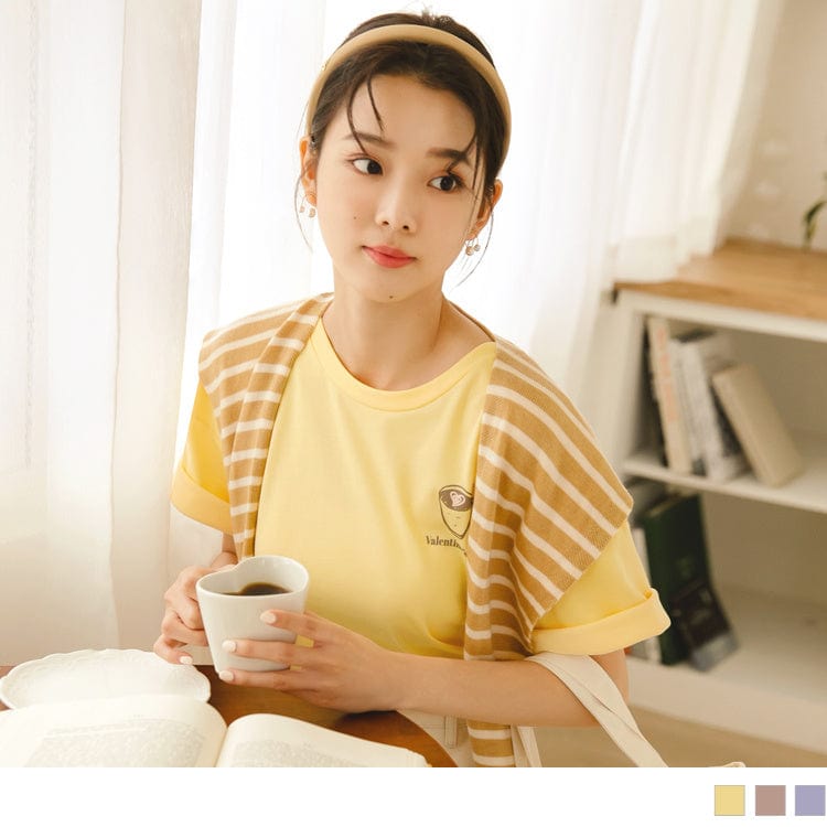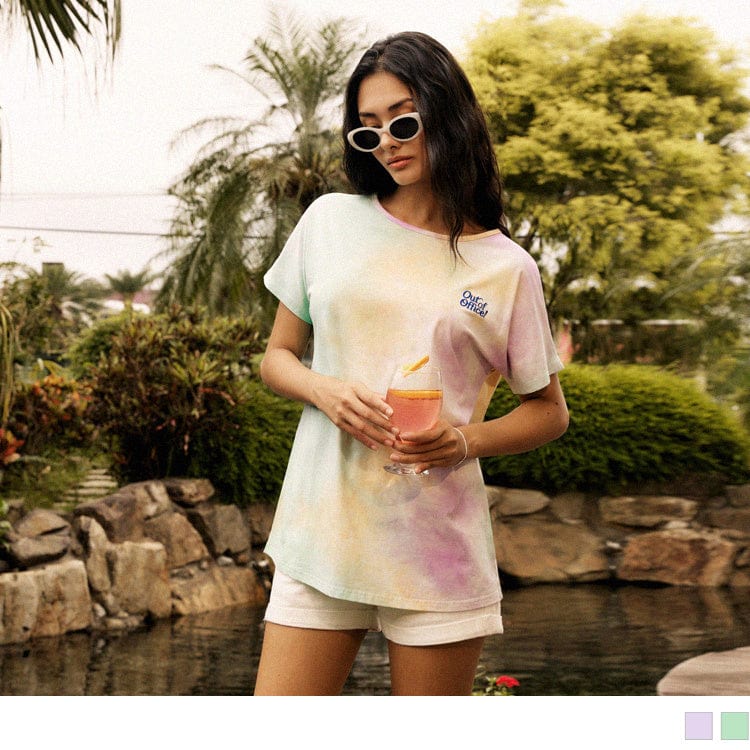 DYE PRINT EMBROIDERED OVERSIZE SHORT SLEEVE TOPS