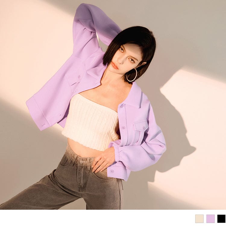 DROP SHOULDER COTTON TUNIC LONG SLEEVE CROP JACKETS