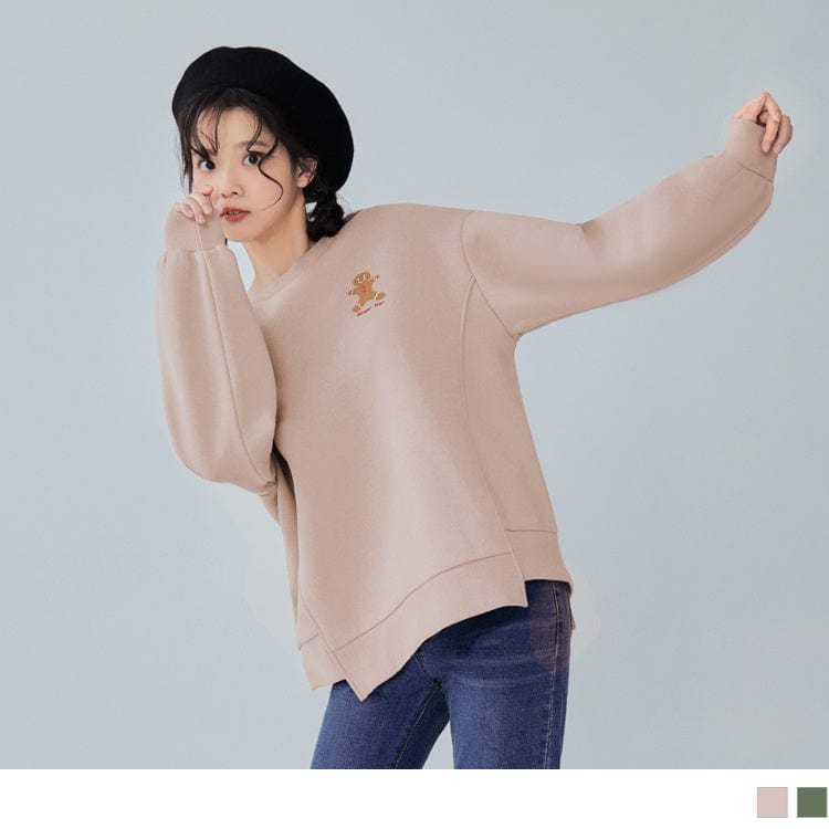 DROP SHOULDER EMBROIDERED ROUND NECK LONG SLEEVE TOPS